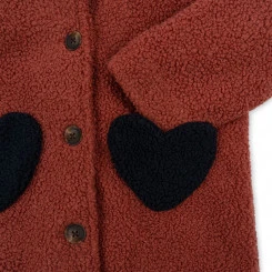 Der süße Calin Heart Mantel von Konges Slojd ist aus weichem Teddystoff gemacht und hat ein warmhaltendes Baumwollfutter. Auf der Vorderseite sind jeweils links und rechts Taschen in Herzform angebracht. Super schick und zuckersüß!