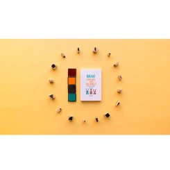 - Inhalt: 16 Holzstempel mit Notizbuch für Deine Kreationen, 4 farbige Stempelkissen