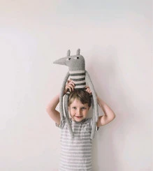 Der handgestrickte Wolf von Main Sauvage aus weicher Alpakawolle ist perfekt für kleine Hände zum Greifen und Kuscheln. Mit seinen sanften Augen und dem subtilen Lächeln wird er schnell zum Beschützer der nächtlichen Träume und zum treuen Gefährten bei alltäglichen Abenteuern. Dieses liebevoll gefertigte Spielzeug von Main Sauvage ist nicht nur ein kuscheliger Freund, sondern auch ein stilvolles Accessoire, das in jedem Raum eine Geschichte zu erzählen scheint. Egal, ob dein Kind mit ihm durch fiktive Wälder streift oder ihn als mutigen Begleiter in den Schlaf drückt, dieser Wolf wird mit Sicherheit ein geliebter Begleiter sein.