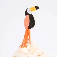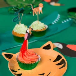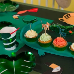 Das zauberhafte Cupcake Set „Go Wild“ von Meri Meri umfasst 24 Cupcake-Dekorationen mit vier wilden Tieren: eine geschmeidige Schlange, einen stolzen Tiger, ein exotisches Krokodil und den charmanten Tukan, komplett mit flatternden Fransen. Die Figuren sind auf Holzstäbchen montiert und brillieren durch ihr detailreiches, glitzerndes Design. Sie sind die perfekte Ergänzung zu den mitgelieferten Cupcake-Förmchen in kräftigem Dschungelgrün mit Blattmotiven. Ob für die Dschungelparty deines Kindes oder einfach nur, um den Alltag zu versüßen – dieses Set macht aus jedem Cupcake ein Fest für die Sinne.