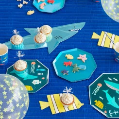 Mit den vier Papptellern „Hai“ von Meri Meri wird jeder Geburtstagstisch zur Unterwasserwelt. Diese Teller sind nicht nur praktisch, sondern auch eine Freude für das Auge. Sie sind perfekt geformt wie ein freundlicher Hai und bringen so die Faszination des Ozeans zu jeder Festlichkeit. Mit ihren lebendigen Farben und dem spielerischen Design sind sie eine köstliche Unterlage für Süßes oder Herzhaftes. Diese Teller sind ideal für kleine Entdecker und Meeresliebhaber, die auch beim Essen von fernen Welten träumen möchten. Lass dich von diesen Hai-Tellern zu einem unvergesslichen Unterwasser-Themenfest inspirieren, bei dem die Kleinen in eine Welt voller Wunder und Entdeckungen eintauchen können.