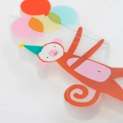 Die Kuchenkerzen „Tier Parade“ von Meri Meri laden zu einer fröhlichen Geburtstagsfeier ein, bei der die Phantasie genauso bunt leuchtet wie die Kerzen selbst. Diese hübsch gestalteten Kerzen in Form von einem Affen mit Luftballons, einer Giraffe mit Geschenk, einem Elefanten, der eine Partytüte hält, und einem Krokodil mit Trommel sorgen für strahlende Augen und eine unvergessliche Party.