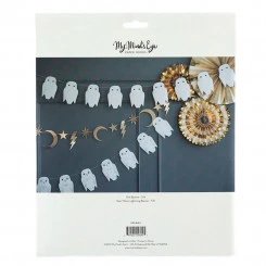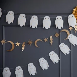 Die „Girlande ‚Magische Eulen'“ von My Mind’s Eye ist ein Stück Zauber, das jeder Raumgestaltung eine geheimnisvolle Note verleiht. Sie besteht aus fein ausgeschnittenen Eulen- und Himmelssymbolen in einem sanften Weiß mit goldglänzenden Akzenten, die das Licht einfangen und den Raum mit einer warmen Atmosphäre erfüllen. Mit einer Länge von 152 cm lassen sich die beiden Girlanden-Teile sich mühelos in jedem Raum anbringen und ist die perfekte Ergänzung für Geburtstage, Leseecken oder einfach als stimmungsvolle Alltagsdekoration. Wenn die Party vorbei ist, kann sie leicht abgenommen und aufbewahrt werden, um bei der nächsten Feier erneut für leuchtende Augen zu sorgen.
