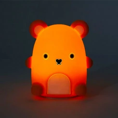 Erhelle den Raum mit dem Nachtlicht Ricecracker von Noodoll, dem kleinen gelben Bär, das gleichzeitig weich und anschmiegsam ist. Dank seiner weichen Struktur lässt es sich auch von Kindern leicht handhaben. Es bleibt immer schön kühl, und durch einfaches Klopfen auf den Kopf des Bärens kannst du zwischen hellem Licht, sanftem Licht und Aus-Modus wählen. Hergestellt aus BPA-freiem, umweltschonendem Silikon, bietet dieses wiederaufladbare Nachtlicht einen 60-Minuten-Timer und eine Tap-On-Funktion. Es sind keine Batterien nötig. Mit seinem trendigen Design ist das Nachtlicht die ideale Ergänzung für jedes Zimmer, ob auf einem Regal oder neben dem Bett. Eingeschaltet oder ausgeschaltet, es sieht immer süß aus. Als sanft leuchtender LED-Begleiter ist dieses niedliche Nachtlicht perfekt für die Kleinen vor dem Einschlafen.