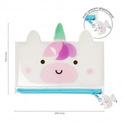 Das niedliche Federmäppchen „Einhorn“ von Pango Productions ist der ideale Begleiter für die Schule oder unterwegs. Mit seinen Maßen von 21 x 17 cm bietet es genug Platz für Stifte, Lineal und alles, was das Schülerherz begehrt. Das transparente Material lässt dich sofort erkennen, was sich im Inneren befindet, während der blaue Reißverschluss das Öffnen und Schließen zum Kinderspiel macht. Das Highlight ist der kleine Einhorn-Anhänger, der nicht nur süß aussieht, sondern auch praktisch ist, um das Mäppchen leichter zu öffnen. Ein Must-Have für Einhorn-Fans!.